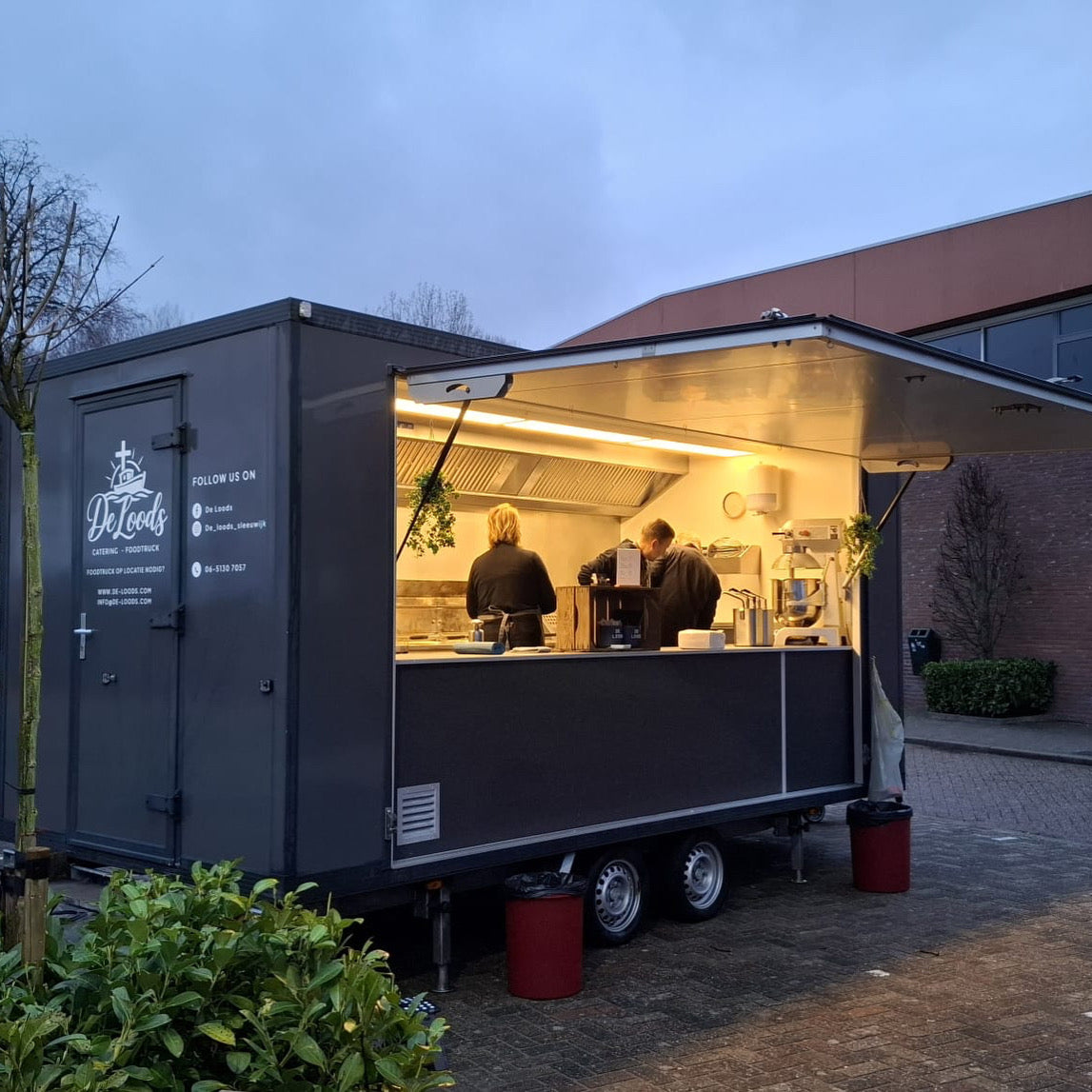 - Bij De Loods: Gebruik de foodtruck als uniek uitgiftepunt tijdens een feest of zakelijk event op onze eigen evenementenlocatie.